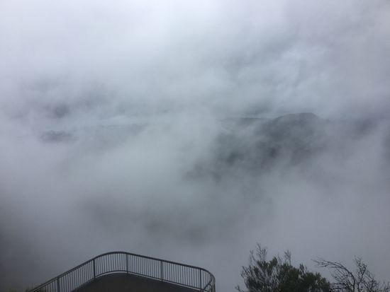 今回は業務・出張の合間に参加しました。天気予報では、前日は快晴、翌日も快晴、でも参加日当日は曇り・雨という状況で案の定、向かう途中から大粒の雨。バスの中は重い雰囲気。。。でもツアコンの小鷹さんが道中上手なトークで盛り上げ、参加者の中に晴れ男がいたようでブルーマウンテン到着時にはガスっていたのですが瞬間的に霧が晴れ、何も見えない霧の状態と霧が晴れた素晴らしい風景の両方が見れて(両方を比較でき)2倍も楽めました!