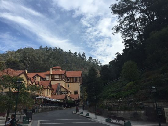今回のツアー参加者は18人だったと思いますが、ガイドのショーンさん(日本人)の案により社内で自己紹介をすることになりました。はじめは少し恥ずかしく思っていたのですが、そのおかげで皆さんと話しやすくなり、とても良かったです。まず、ブルーマウンテンズの色々な展望台の中からおススメを案内して下さり、とてもお得感があります。なかなか自分たちでは行く事ができない所ばかりでした。本当にキレイで気持ちよかったです。ランチは、ホテルのレストランでしたが、とても趣のあるステキなホテルでした。重要文化財的なことを言ってました。メニューは3種類から選べますが、どれもボリュームたっぷりで、ミートパイとキッシュは美味しかったです。あとフィッシュフライがありました。良くあるツアーのように、ドリンクを有料で買わせるシステムもなく、お水と暖かい緑茶を用意してくれました。とても嬉しいサービスですね。