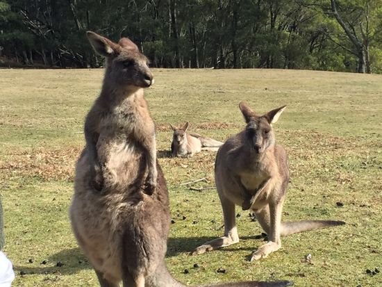 あいにくスッキリとはしないお天気でしたが、ブルーマウンテンで乗り物に乗っているときは、雨もあがって景色を楽しめました。少し後には雨で何も見えなくなったことを考えるとラッキーでした。オリエント洞窟は感動間違いなしですし、カンガルーに会える確率も高いと思います。