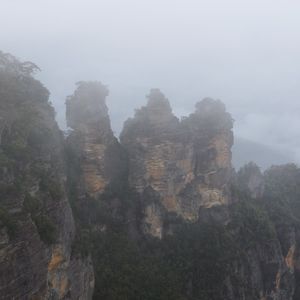 そのため、展望台などスリーシスターズ付近の景色はほぼ全滅でしたが、スリーシスターズだけは一瞬、ホント一瞬姿を現してくれました。
