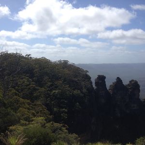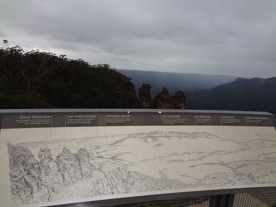 出発し、ブルーマウンテンに向かう道中、雨が降り出してしまい、テンションも上がらないまま、ブルーマウンテンのエコーポイントに到着。アボリジニの方との記念撮影や、アボリジニ文化を紹介するショーに案内されたあと、自由解散となり、建物を出ると、さっきまで降っていた雨が止み、晴れ間が見え始めたので、とてもラッキーでした。風は強かったけど、ブルーマウンテンの見所、スリーシスターズの奇岩群もキレイに見えました。
