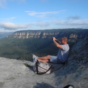 ジェイミーの話は面白く、絶壁での写真も撮っていただきました。車は少々古く、狭いのが残念でしたが、1時間半ほどの我慢。シーニックワールドの乗り物券もちゃんと買ってきてくれますし、昼は動物園でサンドイッチを買い二人でシェアしました。アイスや飲み物も売っています(ちょっと高いかな)