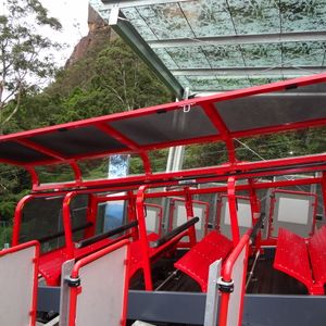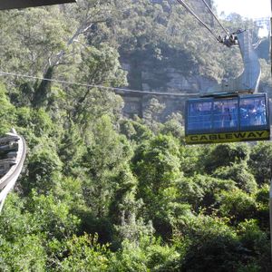 まずはバスターミナルから2時間ほどかけてスリーシスターズが見える展望台に移動。私達が参加した日はあいにくの悪天候でブルーマウンテンズは深い霧に囲まれていましたが、かろうじてスリーシスターズを見ることが出来ました。ここでの自由時間は1時間程度で、土産物屋やアボリジニのショー等がありますが、私達は展望台からカトゥーンバ滝までトレッキングしました。私達は早歩きで往復45分程度かかったので、トレッキングに自信がない方はやめた方がいいです。トレッキングはとても気持ちよかったですが、滝は思ったより小さくて少しがっかりました。別の参加者は走ってトレッキングして、もう一つの滝も見に行ってました。結局この後、カトゥーンバ滝の近くをバスで通りますが、ここで降りることはありません。またトレッキングの途中、観光客を乗せた床下が透明のケーブルカーも見かけましたが、このツアーはケーブルカーに乗ることはありません。