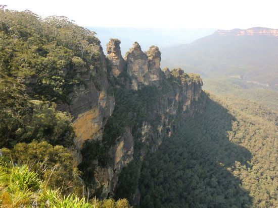 最後に行ったエコーポイントは圧巻だった。スリーシスターズの岩がよく見える展望台である。もちろんブルーマウンテンズの山々と谷も、ため息が出るほど美しく見渡せる。それだけに、ここでの自由時間が短かったのは残念だった。スリーシスターズの奇岩をバックに写真を撮るにとどまった。(そこで、後日、日を改めて、電車でカトゥーンバ駅まで行き、エコーポイントとスリーシスターズ周辺をハイキングした。コースはよく整備されていた。急階段が少し怖かったが、安全に奇岩近くまで下りることができたし、第1の岩に行くブリッジも渡ることができた。)