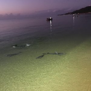 あれじゃあ一緒に泳ぐのではなく水中ウォッチングがいいところ。透明度も悪くイルカの影が辛うじて見える程度。数分その状態ですぐ次のグループと交代って流れでした。