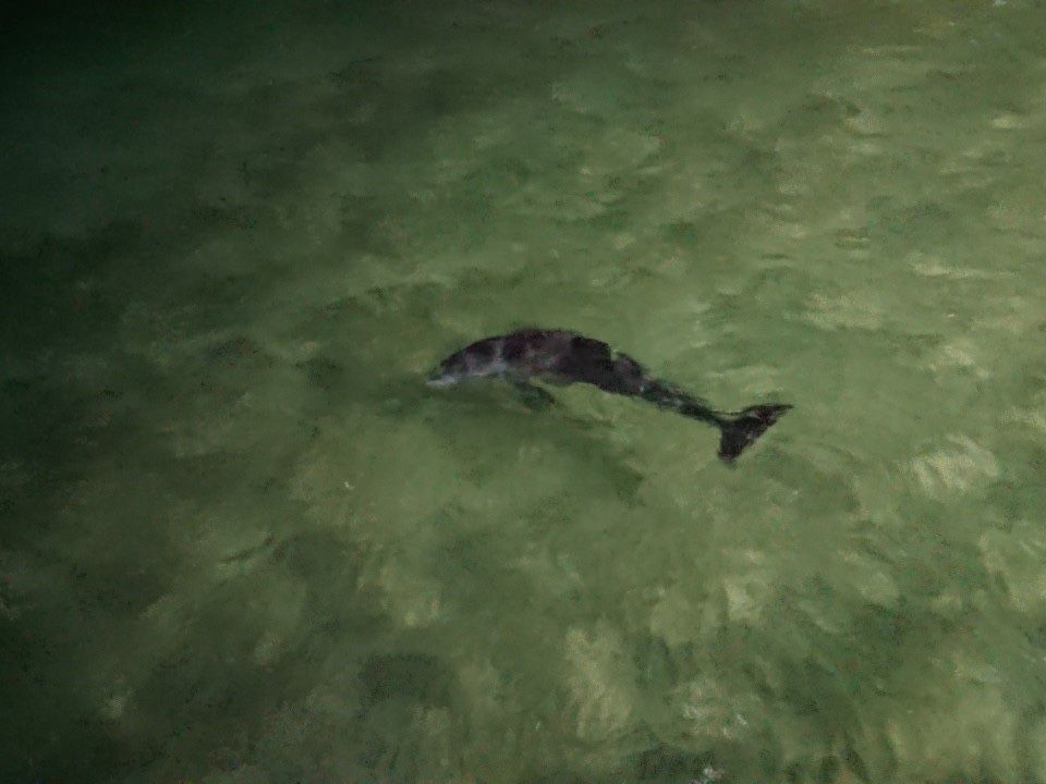 野生イルカは予定の場所に時間通りに来ており、桟橋の上から泳ぐ姿を見るだけとなりました。