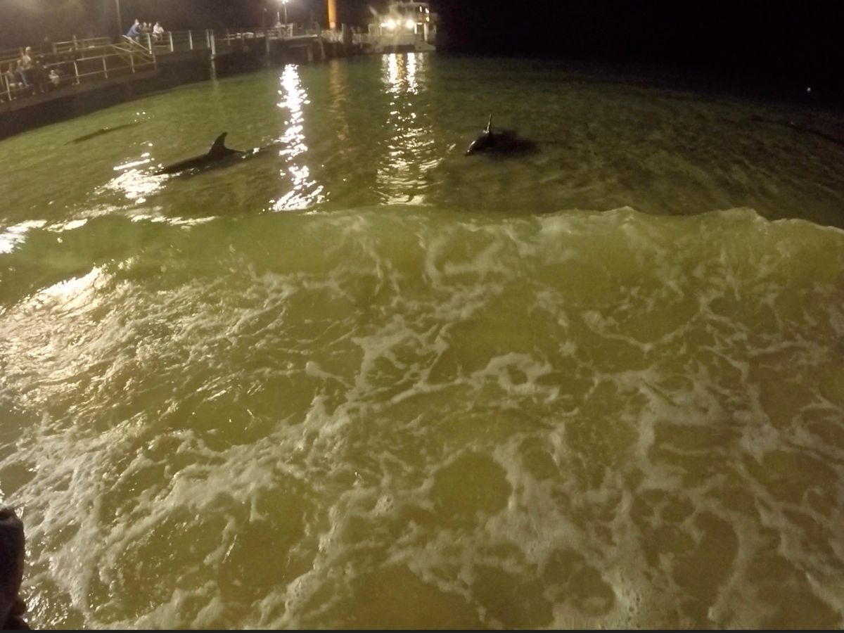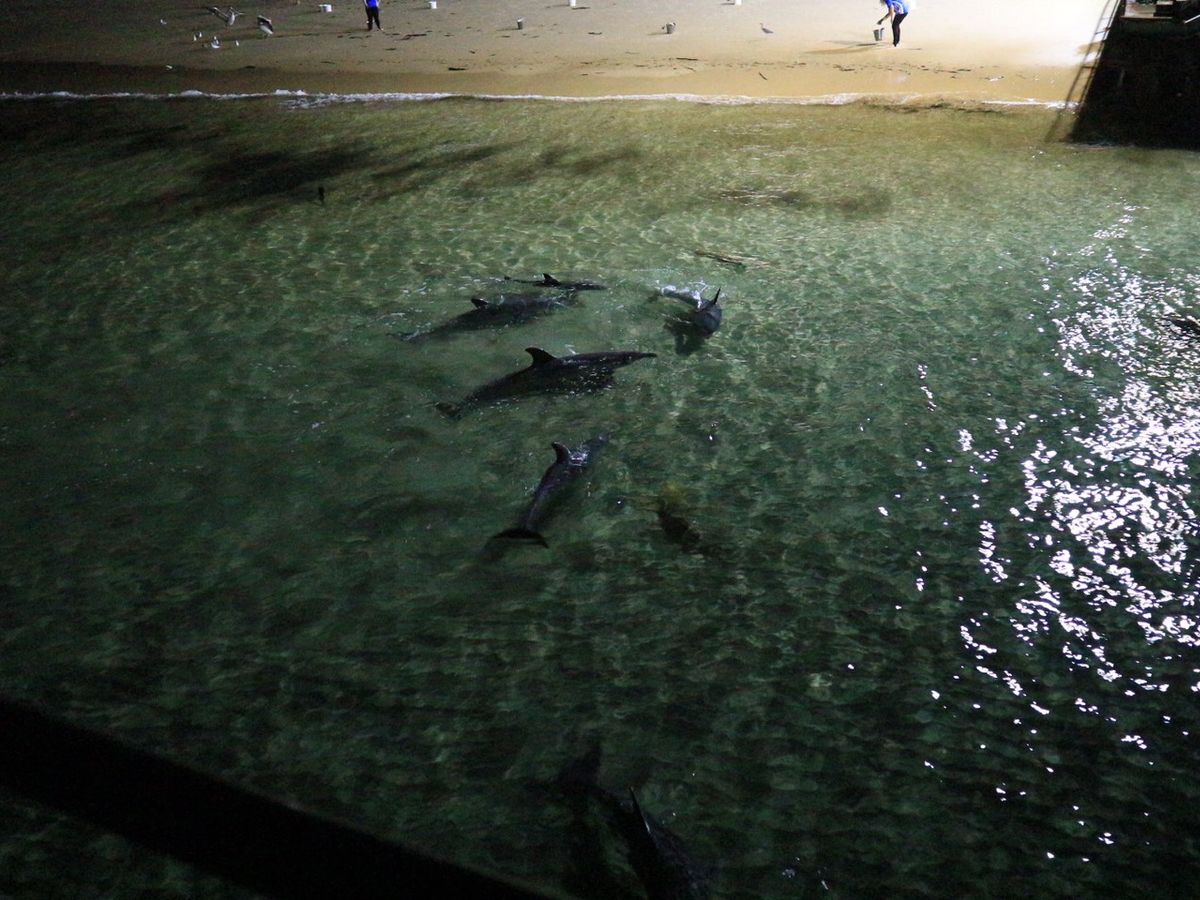 日が暮れてきた頃に、ようやくイルカの餌付けへ。