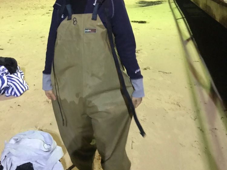 ウェットスーツは足部分が短いやつなので、寒がりの人は履くタイプのラッシュガードを。