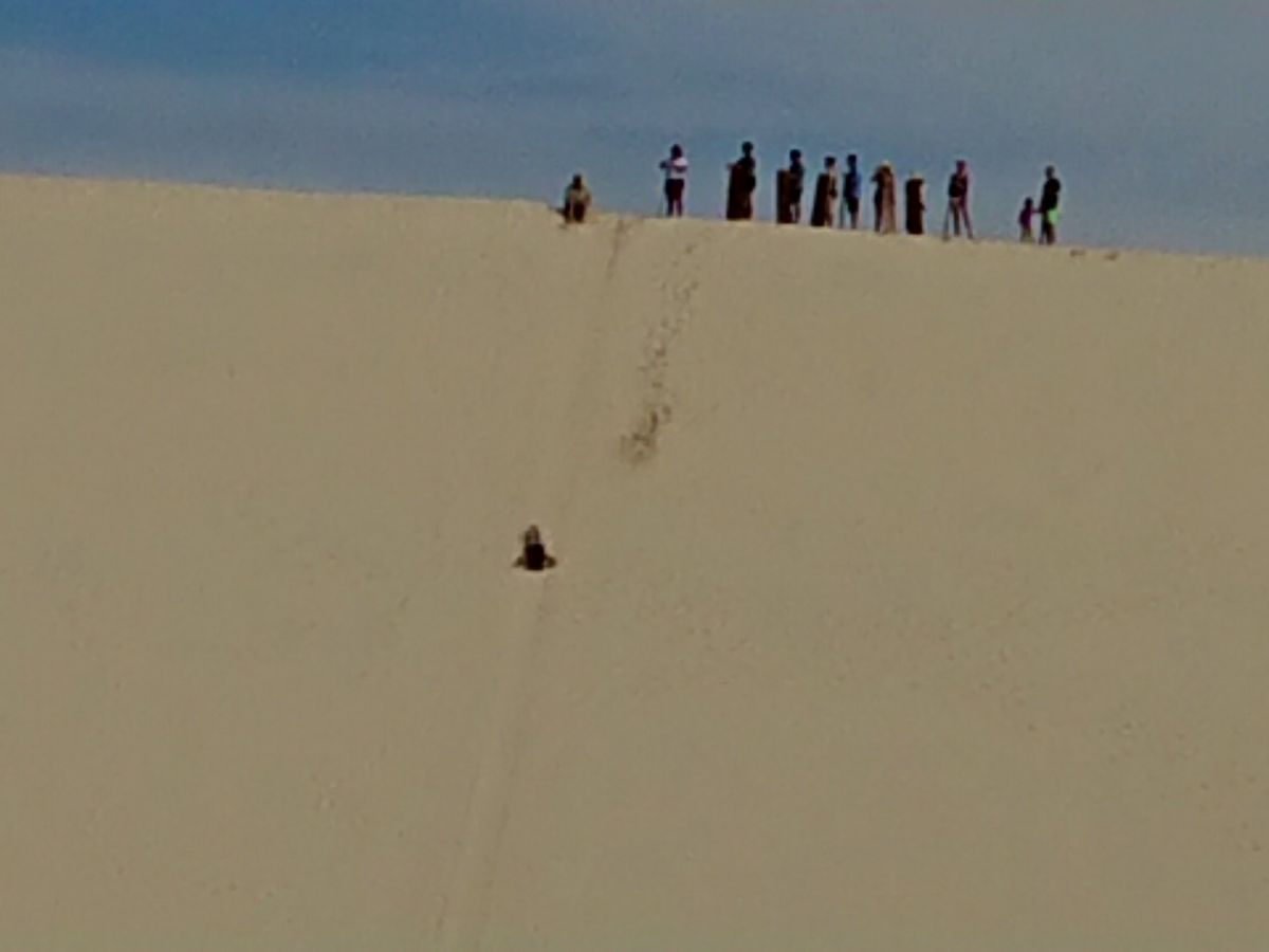 スタッフ説明を受け砂丘を登り(運動不足の私たちはちょっとつらかった)滑走、気分爽快ですよ❗参加者の中には何往復もする方も。