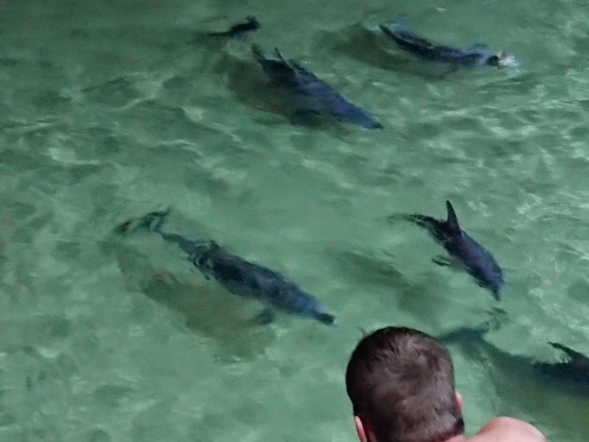 イルカは沢山来ていて、ベイビー連れのお母さんに餌付けをしたら、その周りをベイビーイルカがくるくる回って可愛かった。