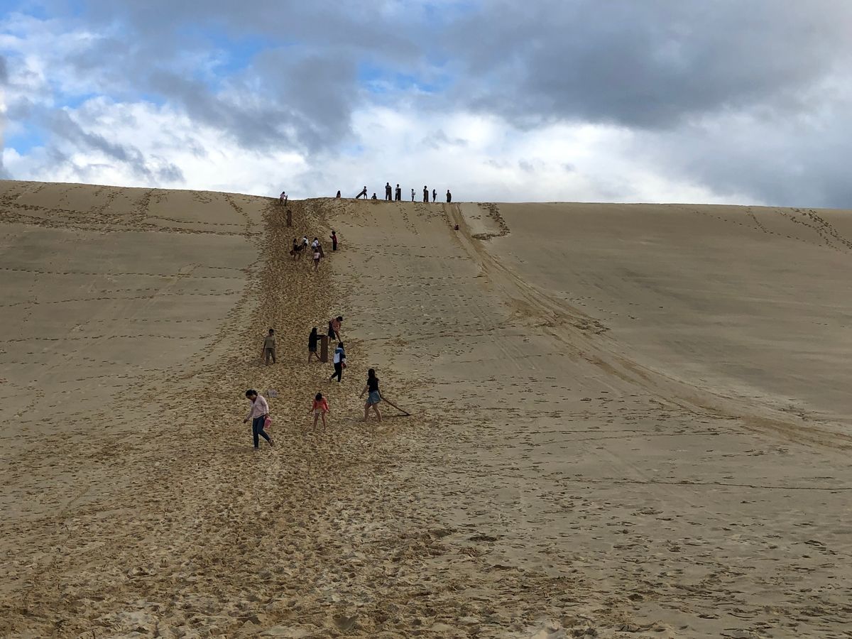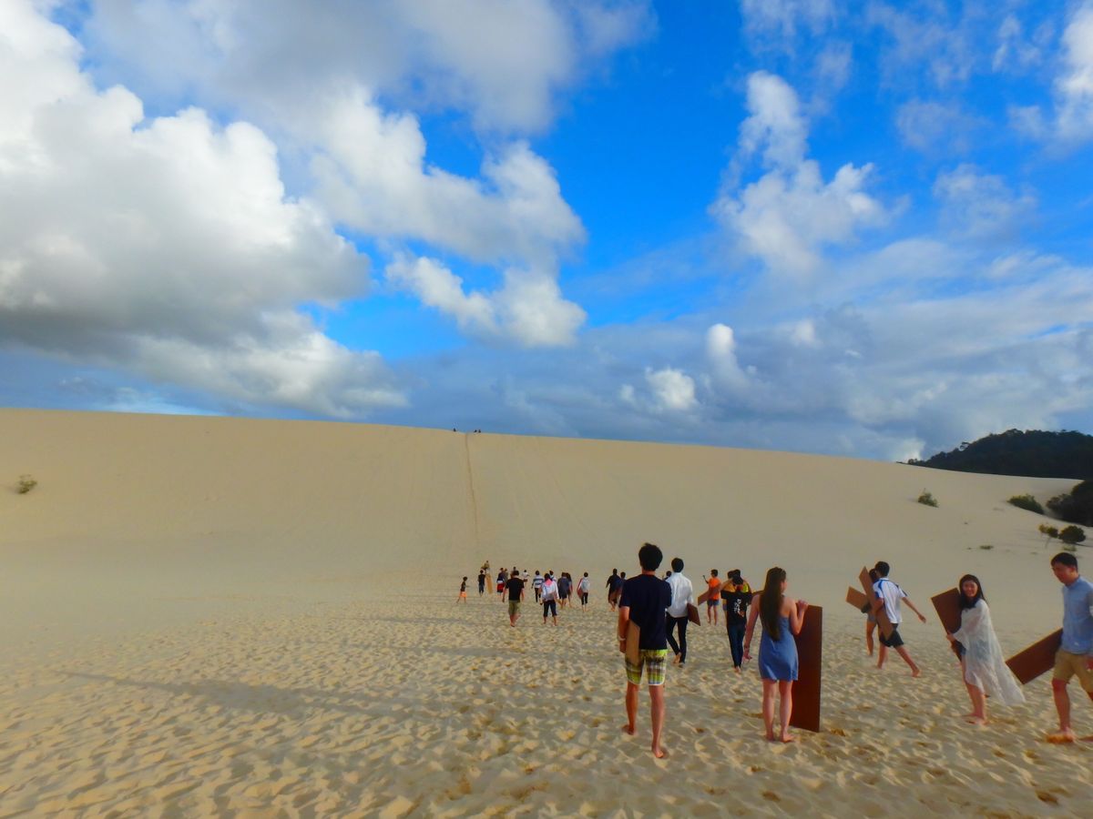 昼食後の砂丘滑りはちょっとした手違いで時間を変更せざるを得ない状況でしたが、できた時間で腹ごなしも兼ねて浜辺を散歩しました。穏やかな波の音の中、ぶらぶらゆっくりと過ごせて結果オーライでした!その後行った砂丘滑りは少し体力も必要ですが(砂丘を登るのでぜーぜー)、思う存分楽しめると思います!板に乗って滑り降りるときは最高に気持ち良かったです!
