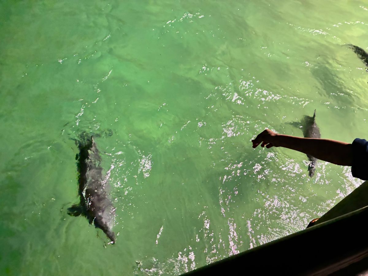 イルカの餌付け体験は波が強く中止になりました。次の日に振替か橋の上から魚を一匹だけ投げるオプションが選べました。私たちは次の日に帰国予定だったため、魚を1匹投げるだけで終わってしまいました。その代わり、3ヶ月以内に船の行き帰り無料券をもらえました。(船で使えるミールクーポンとかのほうがうれしかったです)訪ねる予定がないので無駄になってしまいますが、、イルカは近くで見れたのでまぁ満足です。訪ねる予定がある方は天候で中止になる場合があることを頭に入れておいた方が良いかもしれません。
