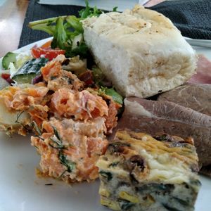 ①朝食のマフィンがしっとりとして美味しい