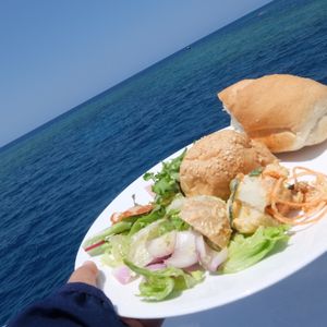 ①スタッフやクルーザーは素晴らしく満足でした。 特にお昼ご飯は今までスキューバであんなに美味しい食事は初めてでした。