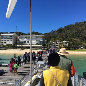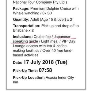 私たちは日本語ガイドがついているホエールウォッチング&ドルフィン餌付けツアーを申し込みました。ホテルからフェリーまでのピックアップもお願いしました。ドライバーは十数分遅れて来ましたが特に謝罪もなく名前だけ確認され”着いてこい”というジェスチャーをされたので着いて行くとピックアップバンがあり、私たちは乗り込みました。数分で着いた先はフェリー乗り場ではなく、バスターミナルのようなところでした。そこで名前と行き先の確認をし、大きなバスに乗り換えTangalooma Ferry Terminal乗り場に向かいました。