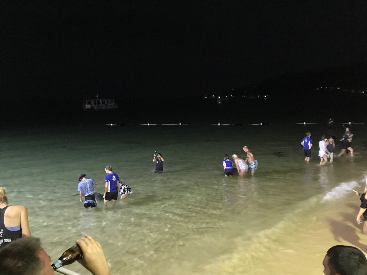 岸近くに着くと、全員それに乗り込みシーウォーカーをやる場所まで移動します。