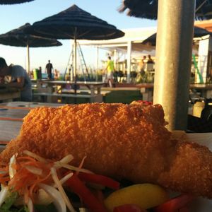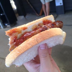 軽食のホットドッグ(食パンにソーセージと炒めた玉ねぎを挟んでソースをかけたもの)をいただきました。とても美味しかったです。