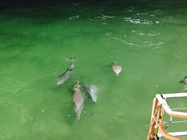 参加時間より早く、集合場所に集まると、イルカたちが待ってる写真など