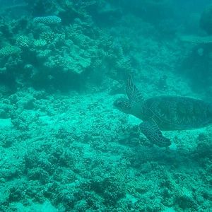 2本目ではアオウミガメも来てくれて大満足のダイビングとなりました。ダイビング中のカメラ撮影は禁止となってますが、普通に使える上に、上がった後に塩噛み解消用のお湯まで準備してくれてます。
