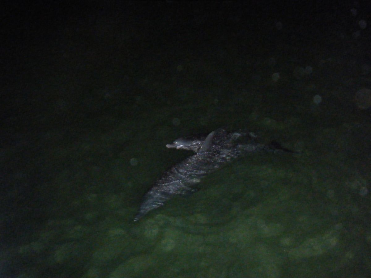 野生のイルカの餌付けでは、ホント一瞬の出来事でした。とってもなつっこくって、