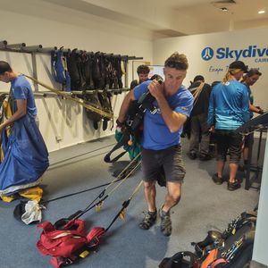 その後すぐにロッカーに荷物を預け、一緒に飛んでくれる方と挨拶や装具などをつけてもらい、バスで飛行場まで向かいます。