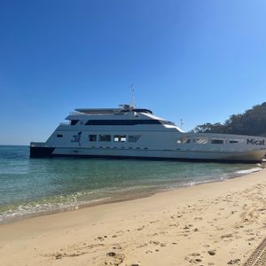 朝、6:50に指定されたホテルの前でピックアップしてもらい、ブリスベンを経由して、港に到着しました。cafeがあったので、コーヒーを飲みながら船の出発を待っていました。モートン島までの船は大きくあまり揺れを感じずに快適に過ごせました。