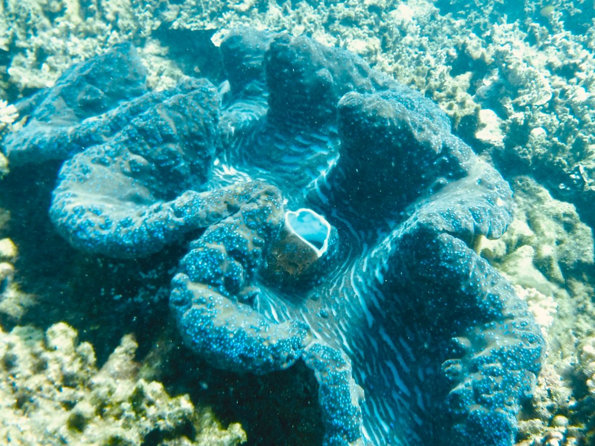 風が多少強かったせいで透明度はいつもよりなかったようですが、他で潜った時よりもサンゴの種類は多かったように思います。巨大なシャコ貝もあってなかなか面白かったです!