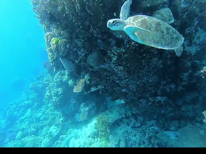 亀が目の前を泳いだり(一緒に泳いだ気分)、サメに遭遇したり(遠くだけど怖かった)、きれいなお魚の群れ、色とりどりのサンゴ、最高に楽しかったです。