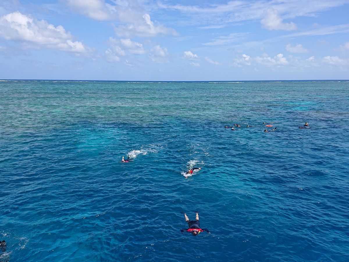 天候はあいにくでしたが、初グレートバリアリーフの海の中は、サンゴ礁も大きく想像以上に綺麗でした。