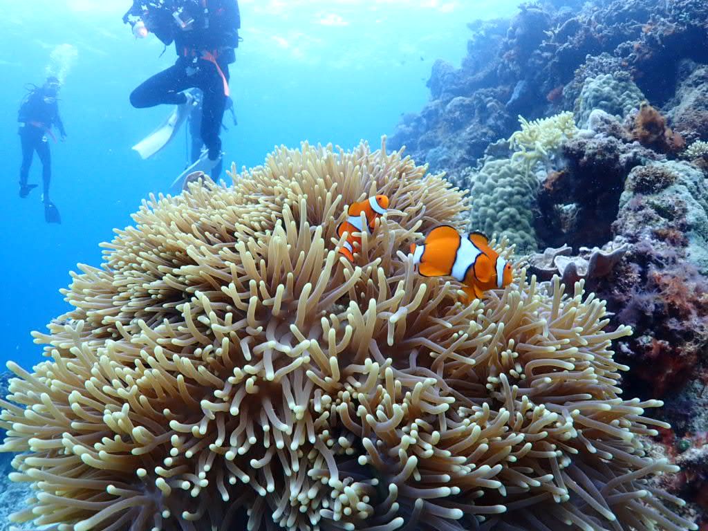 水中カメラマンさんもいらっしゃり、クマノミと一緒に写真を撮っていただけました。