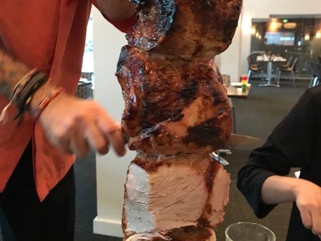 シェラスコが初めてだったのでどのような感じか不安でしたが、とってもおいしく、満足のディナーでした!予約をしていたので、すぐに席に通してくださり、席には日本語で本日の流れが書いてありました。先に前菜が配膳され、前菜も種類豊富でとても美味しくいただきました!色々な種類の肉を席まで来て切ってくださり、こちらがストップというまでどんどん切ってくれます!飲み物は含まれていないので、欲しい方は追加で注文する必要があります。どのスタッフも優しく、笑顔で質問にも答えてくださり、とても楽しい時間を過ごすことができました。会計はテーブル会計ではなく、伝票をもらい、レジまで行き、支払うシステムです。