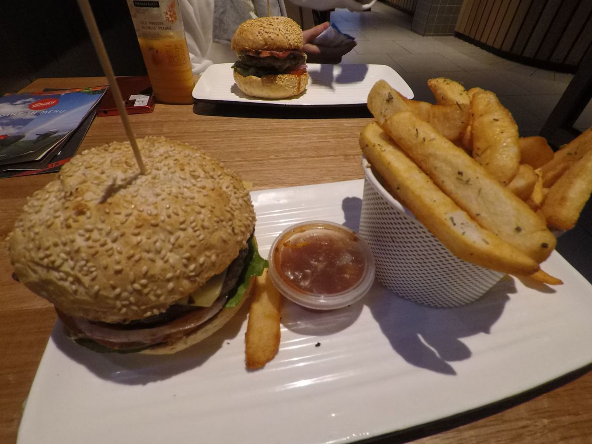 パンケーキで有名なアルポートカフェですが、バーガーセットも