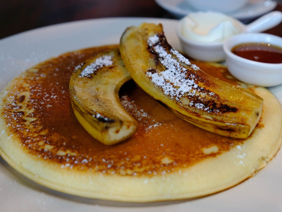 焼きバナナがあまーくて美味しかったです。ハニーとサワークリームとパンケーキとバナナがマッチして最高です。大満足の朝ごはんとなりました。