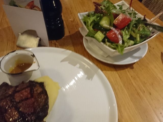 ちなみにフライドポテトはマッシュポテト、ガーデンサラダは小玉ねぎ2つのことでした。焼き加減はミディアムレア位が丁度良いようです。(日本よりもしっかり焼かれています)