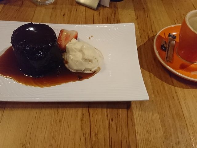 メインのサーモンもまぁ食べれるかな。普通に普通。ドリーという白身魚もありましたが、それよりはサーモンのほうが美味しいです。でも家族が食べてたポークの方が美味しかったです。デザートはチーズケーキとチョコレートとありましたが、個人的にはチョコレート。でも旦那さんはチーズケーキも普通においしかったそう。