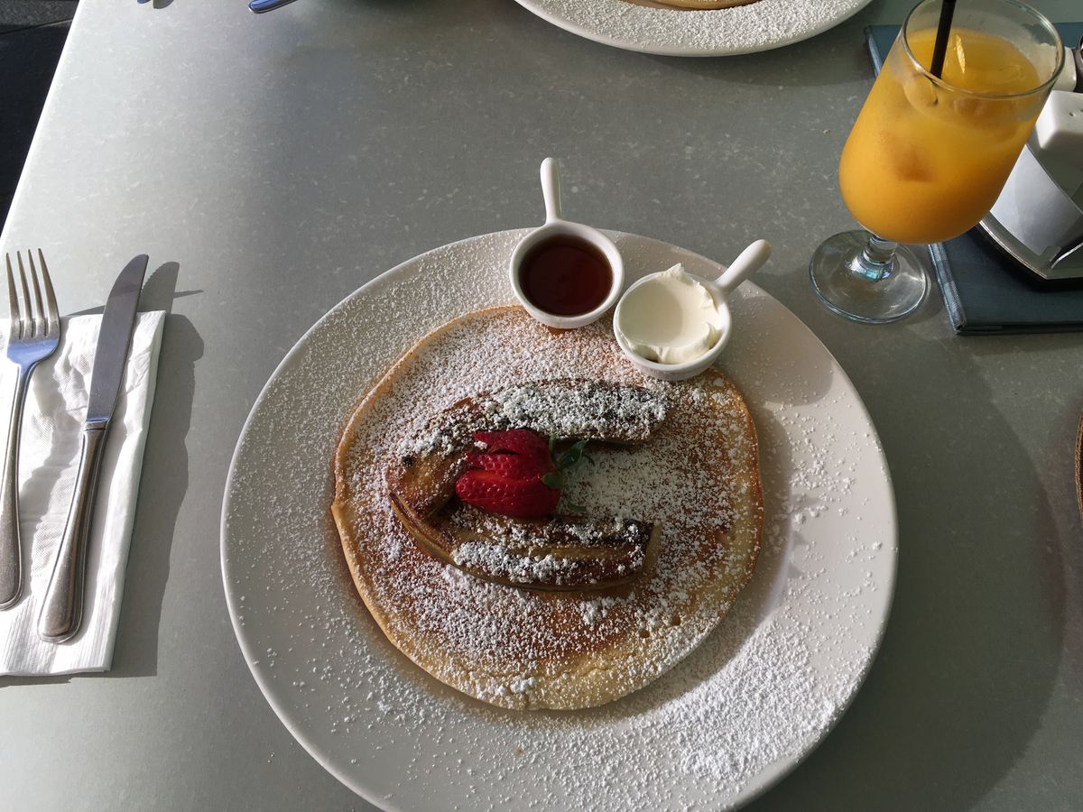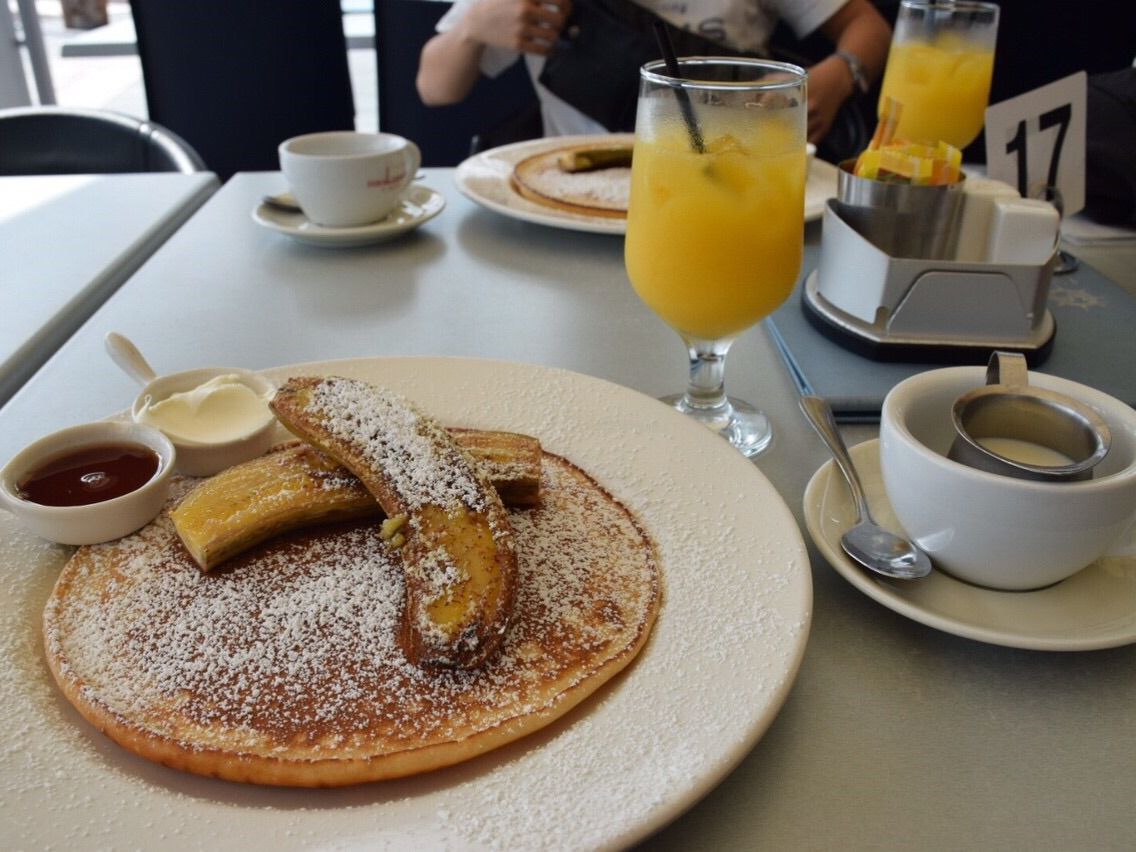 無料のパンケーキということであまり期待していなかったのですが(失礼(>_<))、運ばれてくると大きさにビックリ!!味もとても美味しかったです꒰*´∀`*꒱私は早朝着だったので、そのままホテルで荷物を預けて食べに行きました!朝早くから開いてるのもとても助かりました!!