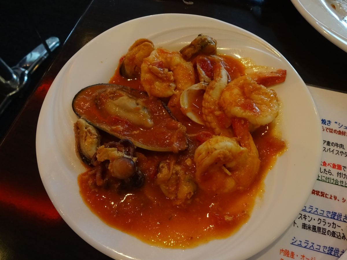 オーストラリア産の牛・豚・鶏・羊だけでなく、カンガルーの肉も食べることができ、とてもお得なコースだと思った。そして、シュラスコの店なので肉主体なのだけれども、意外と海鮮のトマト煮込みが様々な魚介類が入っていて個人的に良かった。