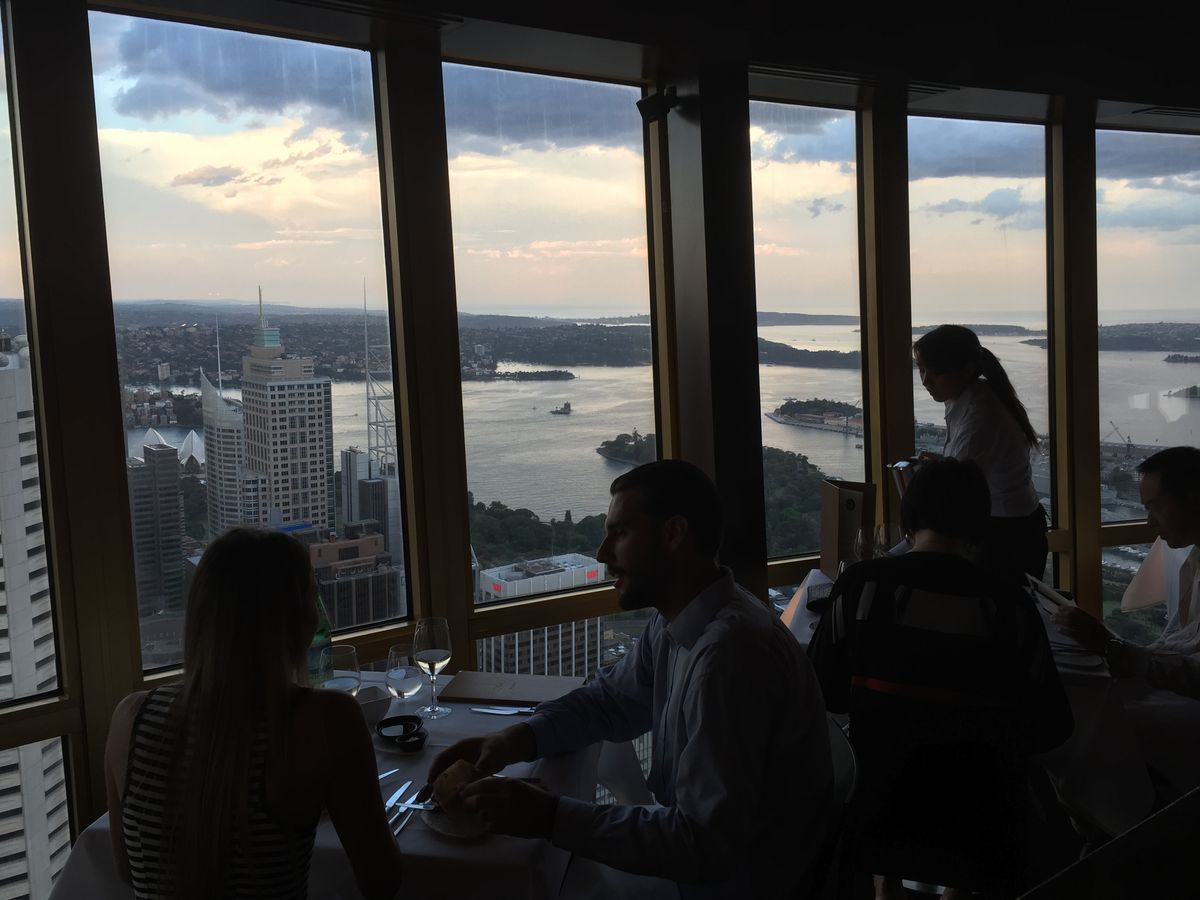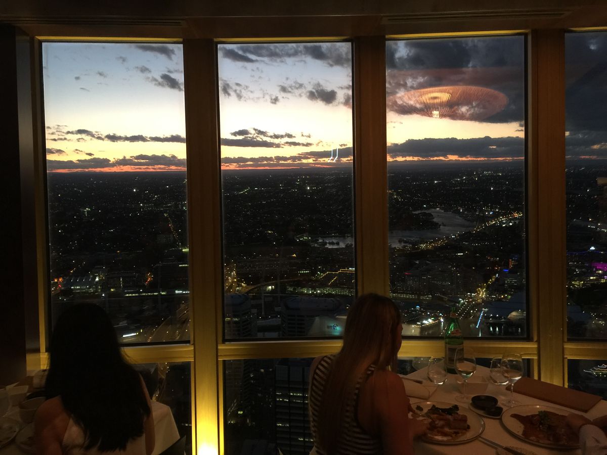 このサイトで予約をしてすぐにコンファームのメールが届きました。夕日と夜景、両方見たくてサイトでシドニーの日の入りの時間を調べ、18時ちょっと過ぎという早めの予約にしましたが、バウチャーを交換するデスクは、週末だからか既に長蛇の列。ローカルの方たちが素敵なドレスを来て並んでいたましたが、どうやら結婚式の二次会みたい。バウチャーを見せ、予約があることを確認してもらい、エレベーターで上へ。(何階か忘れてしまいました。。最初のストップの階が360バーです。一つ上の階がビュッフェ式のレストランです)写真も添付しますが、入ってすぐにうわー!と声が出てしまう華やかさ。笑顔で迎えてくれてとても綺麗なオーストラリア人女性ウェイターに案内され着席。ビュッフェ式ではないのがまた優雅。このサイトで申し込んだのはコースメニューで、スタッフの方もそれを知っているようで、コース用のメニューを持ってきてくれます。3コースを頼んでいたので、何種類かある前菜、メイン、デザートをオーダーします。私は前菜に牡蠣、メインにお肉料理とチョコレートケーキを頼みました。ドリンクは含まれていませんでしたので、炭酸水を注文。料理は割りとゆっくり出てきます。しかし景色が素晴らしいので飽きません。回転するレストランでは360度シドニーを眺めることができます。日が沈む前と後では景色が全く違うのが興味深い。1周するのに15〜20分くらいかかるくらいの速さなので、初めは少し違和感を感じますが、もちろん酔うほどではありません。スタッフも皆優しく、プロフェッショナルな方たちなので、記念撮影にも応じていただけました。料理に関しては見た目に凝っていて、崩すのがもったいないくらい。日本のフレンチなどと比べては辛口になってしまいますが、十分満足の味です。小さいのかなと思いましたが、意外とボリュームがありました。料理の写真はうまく撮れなくて逆に添付するのが失礼なので、やめときます(笑)。次は記念日に来ようかなぁ。おすすめです!