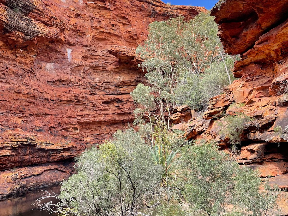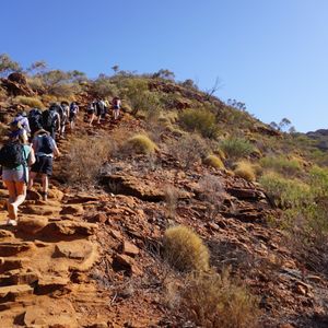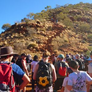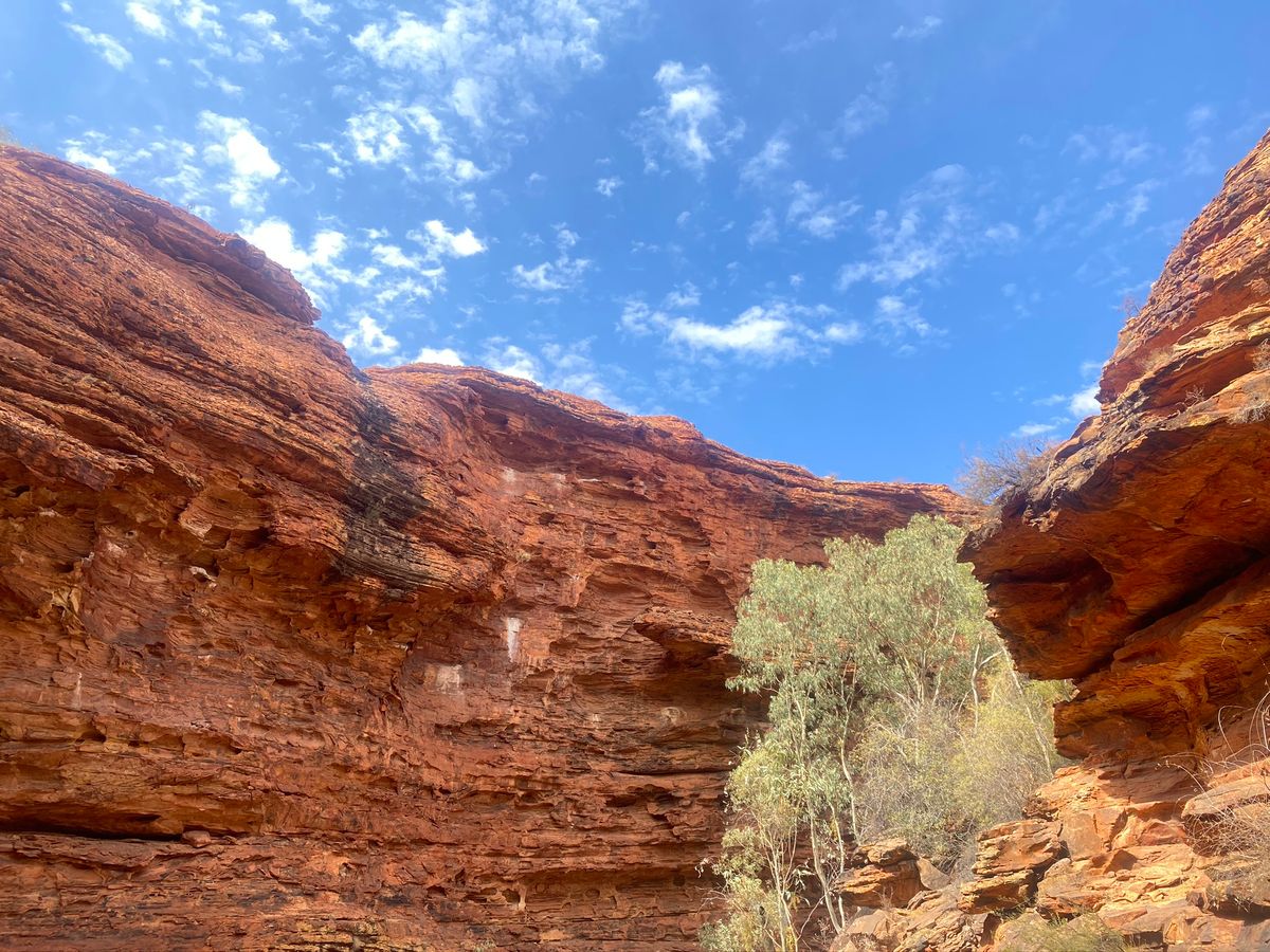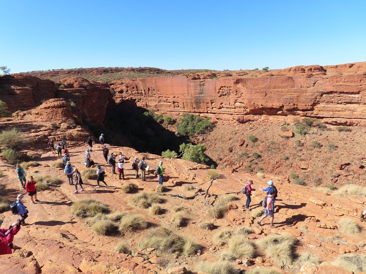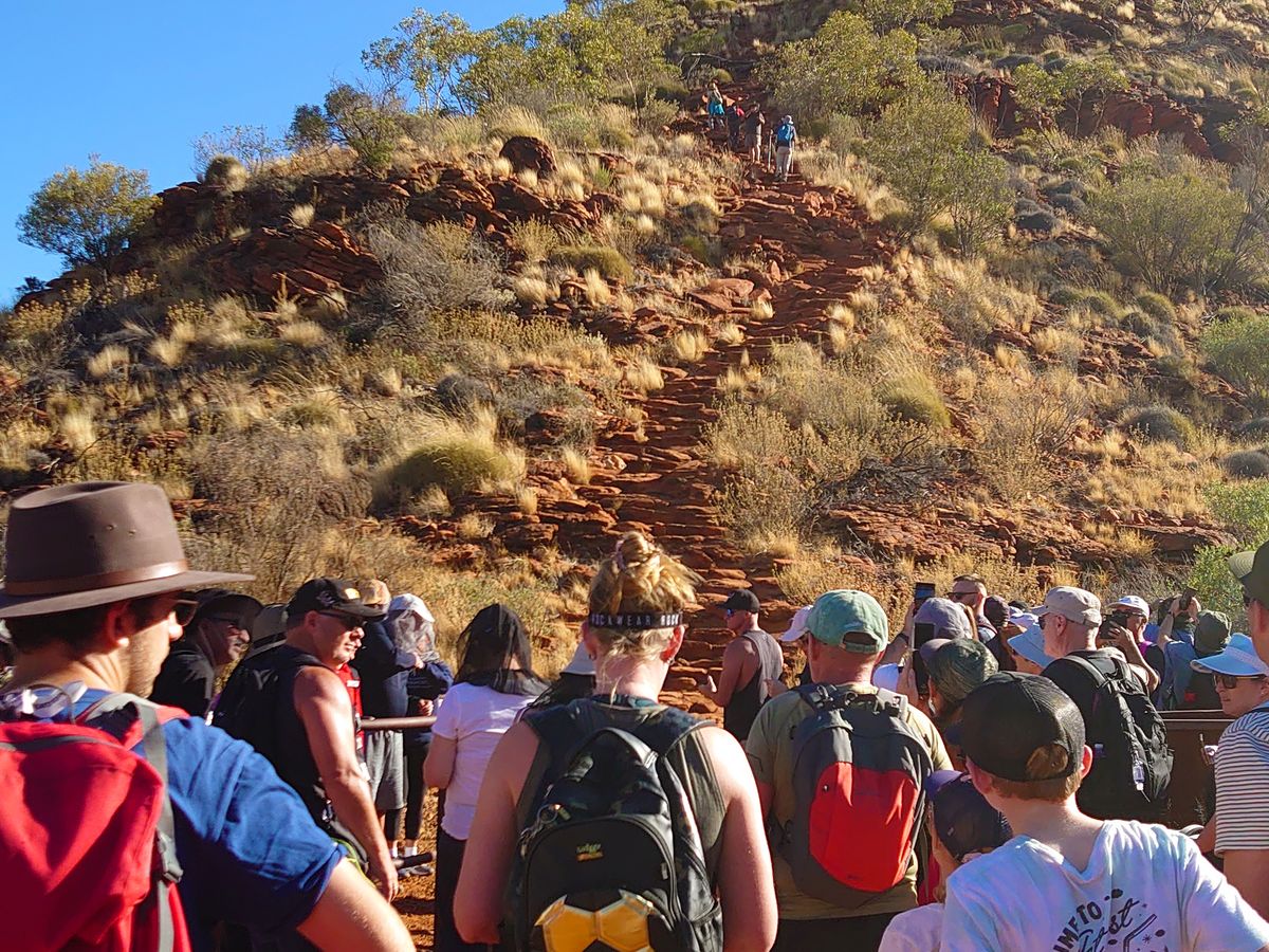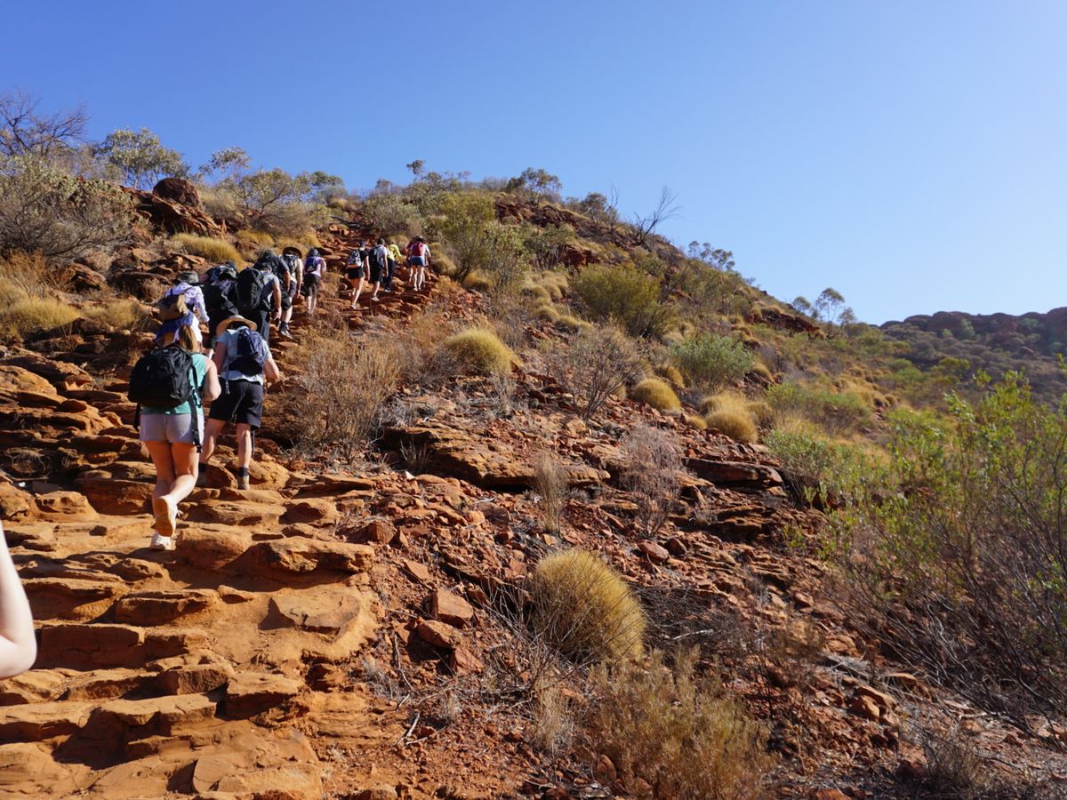 私は前日にウルル、カタジュタなどに行っていて、思いの外暑く無理かもしれないと思いましたが、無理なら折り返して緩やかなコースに変更できるということで、挑戦してみました。