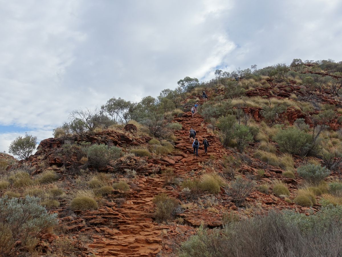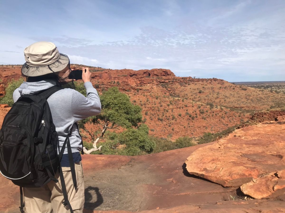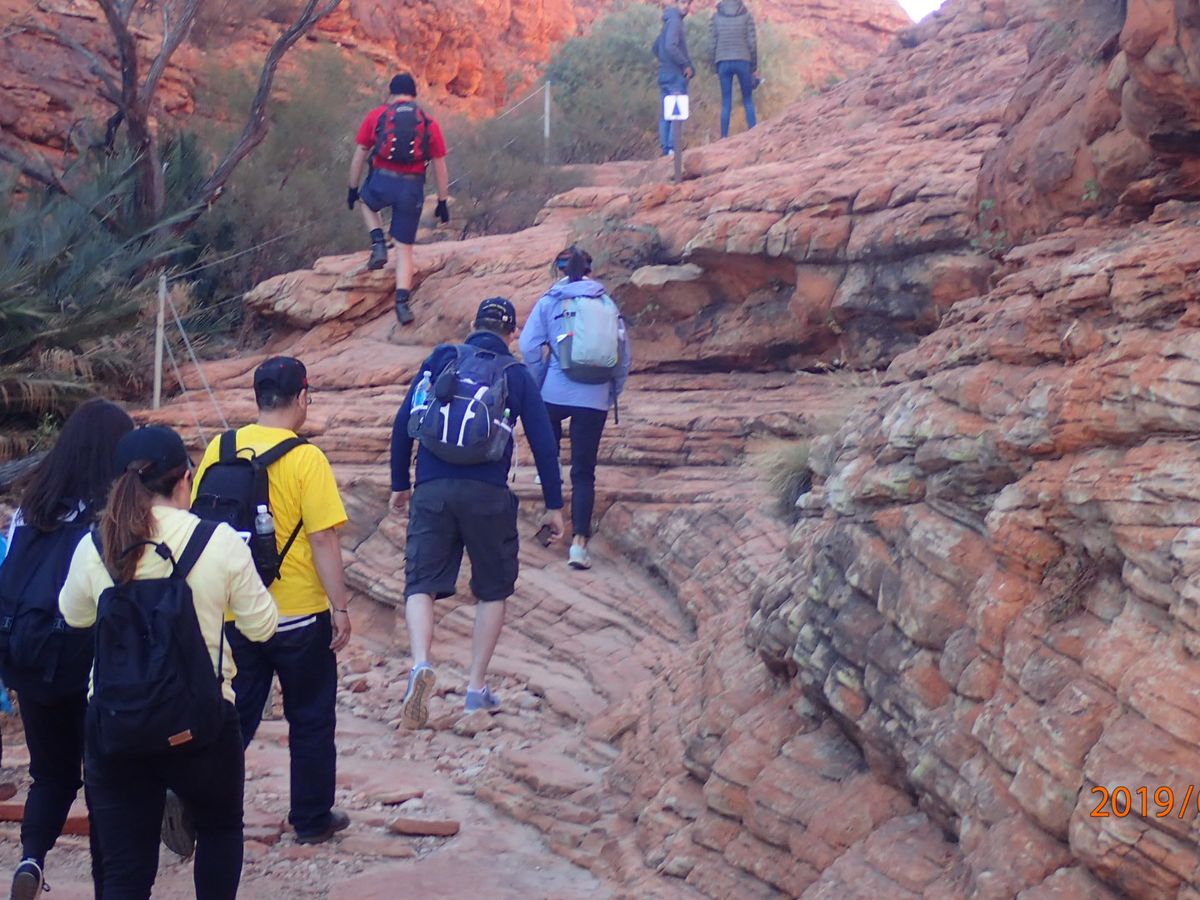 普段運動はしないので、少し心配していましたが、リムウォークを選びました。約3時間歩きっぱなしかと思っていましたが、写真撮影タイムや休憩タイムもあり、最初の階段以外はハードではありませんでした。普段からよく歩いているというオージーの70代のおじいちゃんも最後までしゃべりながら歩けていました。壮大な自然の中をもっと歩きたかったです。ウルルもよかったですが、個人的にはキングスキャニオンの方がよかったです。もし日程に余裕があれば、絶対に行くことをおススメします。