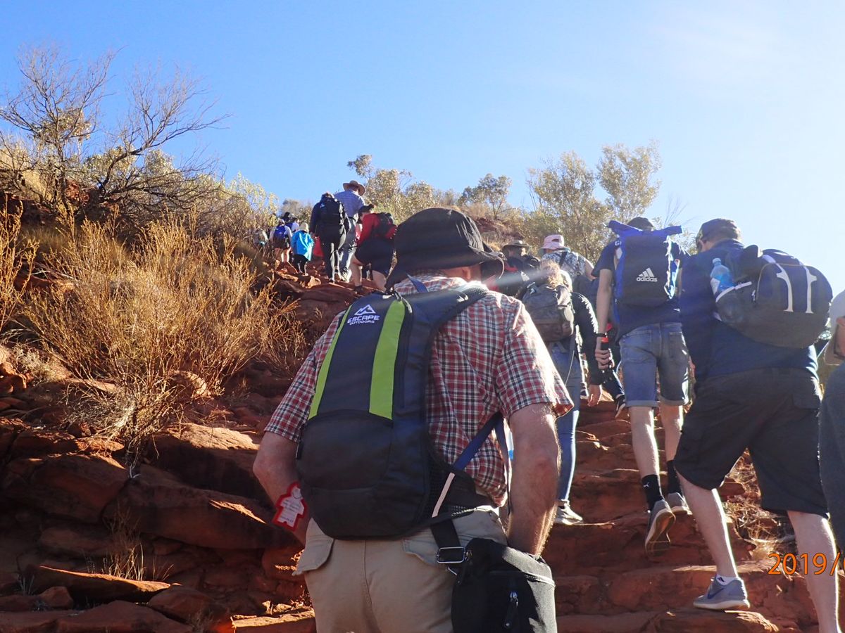 英語オンリーではあったが、皆に着いていけばどうにかなる。前日に登ったエアーズロックに比べれば、水分補給もそれほど必要とせず、かなり楽な登山(ロングウォークで3時間ぐらい)ではあった。