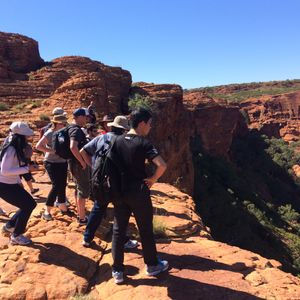 約4時間程度のハイキングでした。エアーズロックだけ行くのは勿体無いと思うほど、壮大で美しい景色がキングスキャニオンには広がっています。おじいちゃん、おばあちゃんも参加していたくらいなので、リムウォーク、最初はきついですが大丈夫だと思います。水を持って行くのを忘れないでください(必ず確認されます)。6月に参加でしたが、気温も20度程度で汗をじんわりかく程度でとても気持ちの良いウォーキングでした。