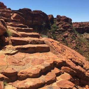 エアーズロックに三日間ほど滞在する方は1日かけてキングスキャニオンのツアーに参加することをオススメします。違った惑星に辿り着いたのかと感じられる場所です。しかし、そのキャニオンクライミングの入り口の階段が中々しんどいです。ここを越えれば、あとは楽です。