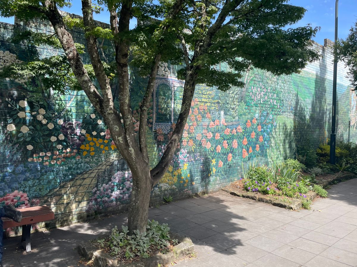 ルーラの町は綺麗でかわいらしい商店街。道路の中央分離帯は桜並木になっていました。