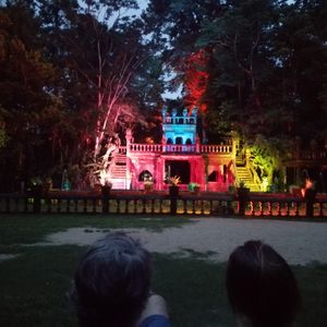 夜の部は日本語ガイドの人が色々な話をしながら再度散策。ライトアップは色とりどりのライトで照らしながらクラシックやラピュタの曲が流れてなかなか面白かったです。