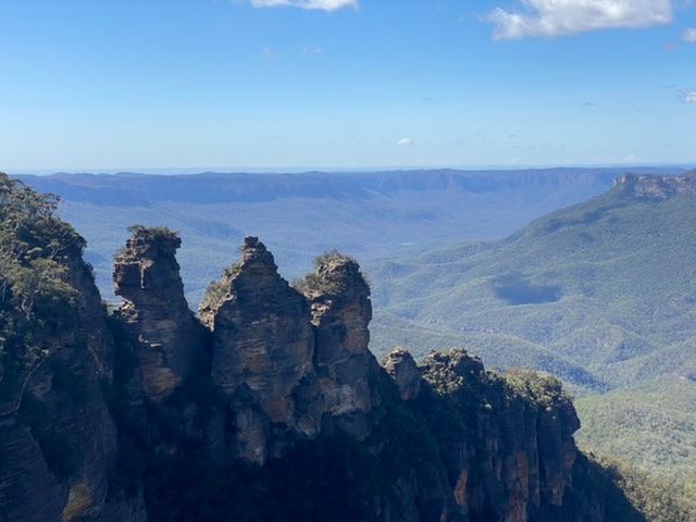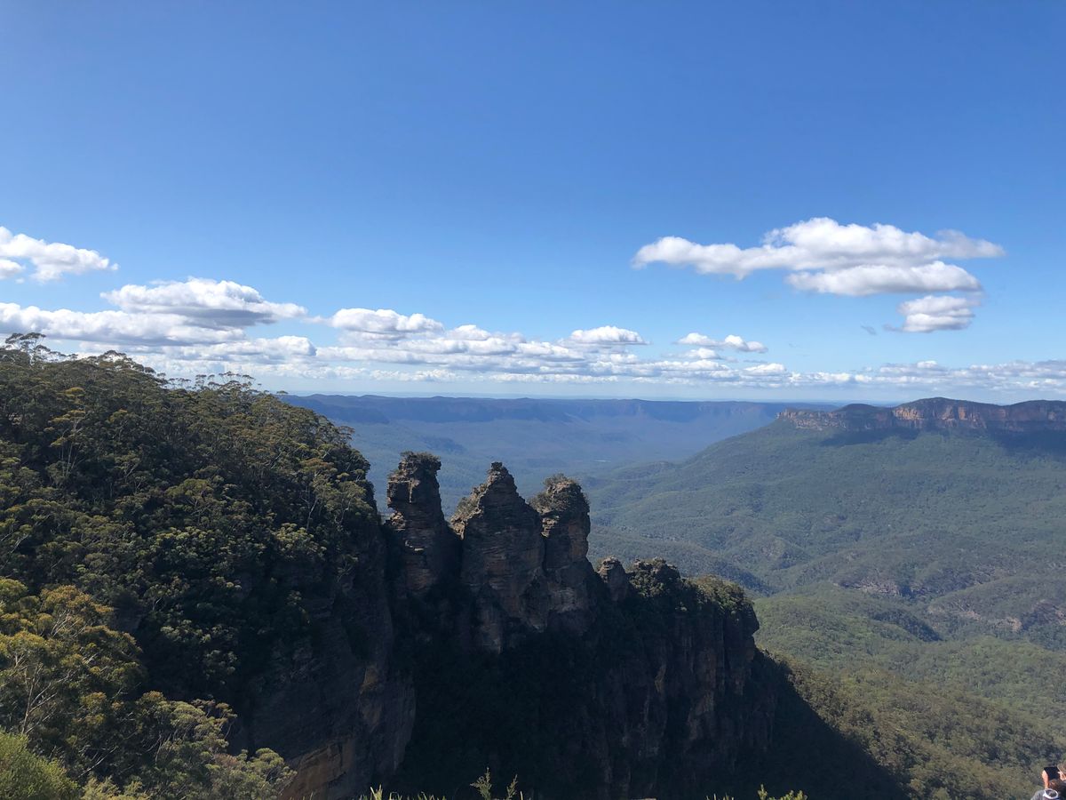 この日はとても天気が良く、良すぎて日焼けが気になるくらいでした。20人乗りくらいのバスに乗ると優しいガイドさんのブルーマウンテンに関する説明を聞けました。いざ着くととてもいい景色で最高。途中でロープウェイなどに乗るオプションが44ドルであるのですが、天気がいいなら間違いなく行くべし。いろんな角度から山を見られます。ルーラの街で1時間程度のフリータイムがあるのですが、ガイドさんがミートパイのお店とフィッシュアンドチップの店をおすすめしてたので行きましたがとても美味しかったのでおすすめです。