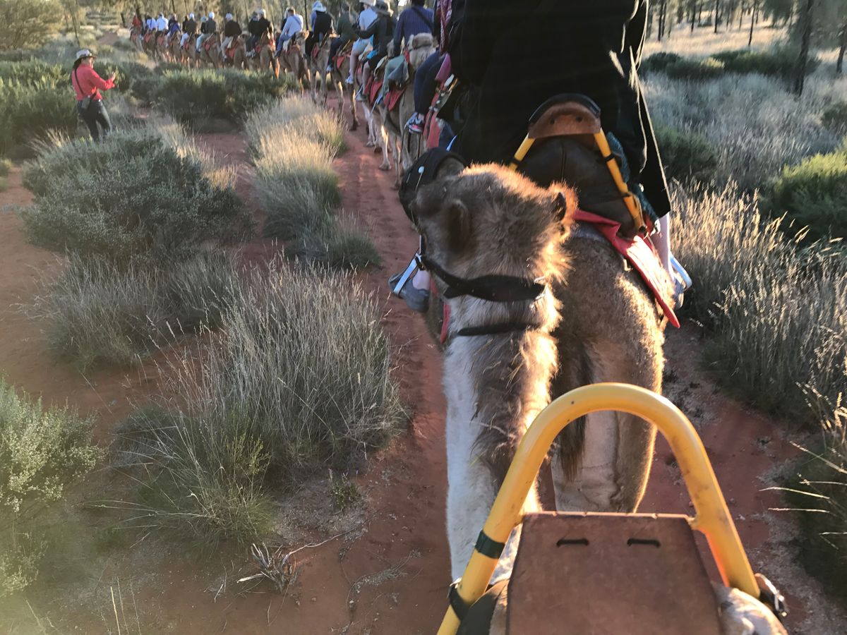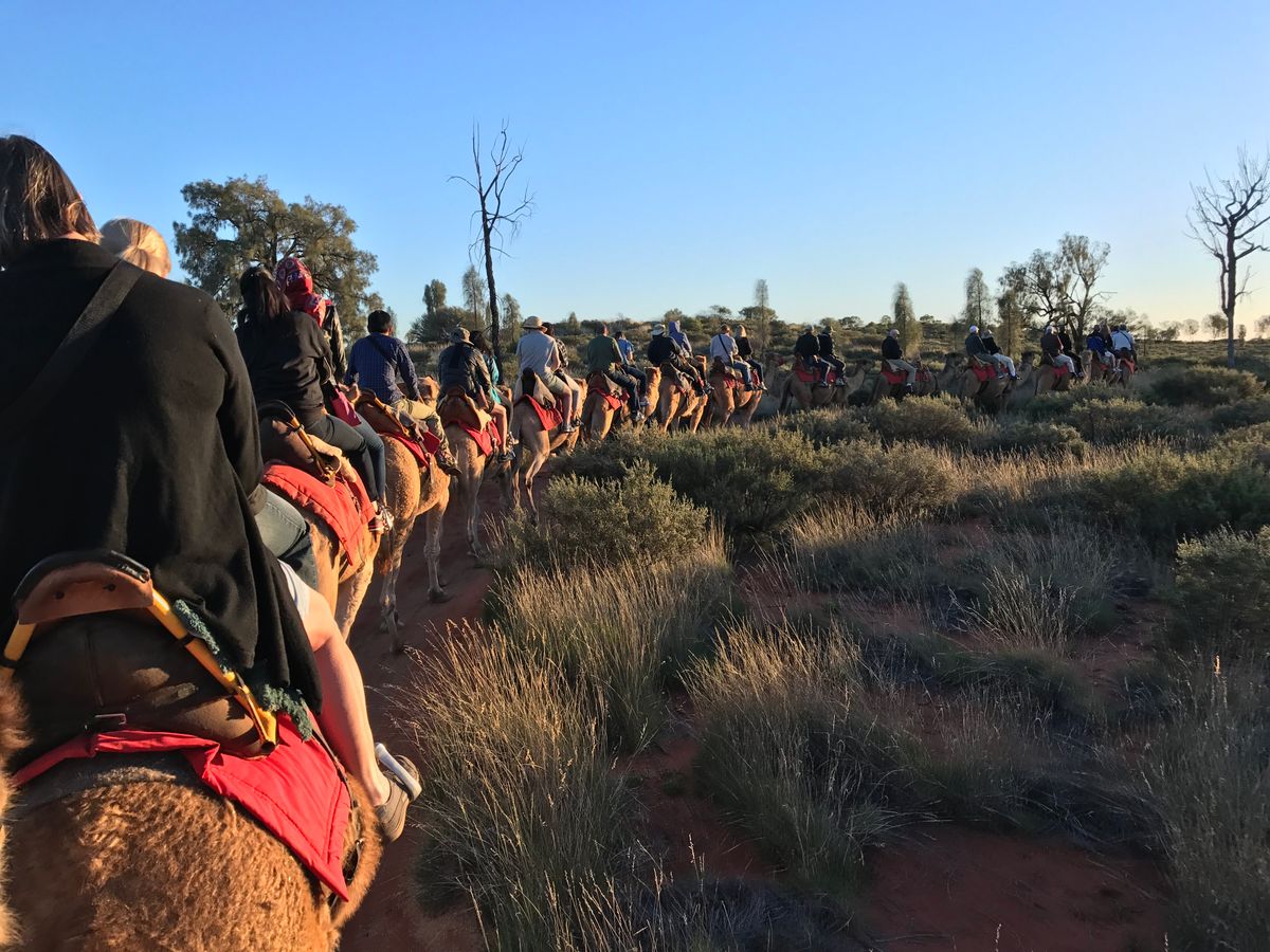 私たちが参加した日は天気も良く、きれいな夕日がウルルに沈む様子ほとても素晴らしかったです。 ラクダに一度乗ると終着地まで乗りっぱなしですが、ラクダはゆっくり進むも、時間はあっという間に感じました。間近で見るラクダは大きくて、最初は怖かったですが、きちんと乗り方もレクチャーしてくれますし、おとなしいので安心ですよ。
