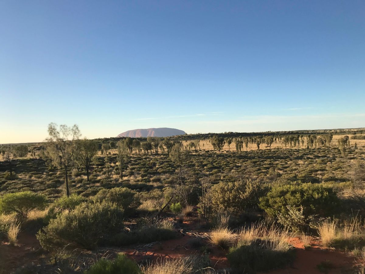 早朝から、コーヒーを飲みながらのウルルサンライズ。残念ながら雲が多く期待通りのカラーには見えませんでしたが、