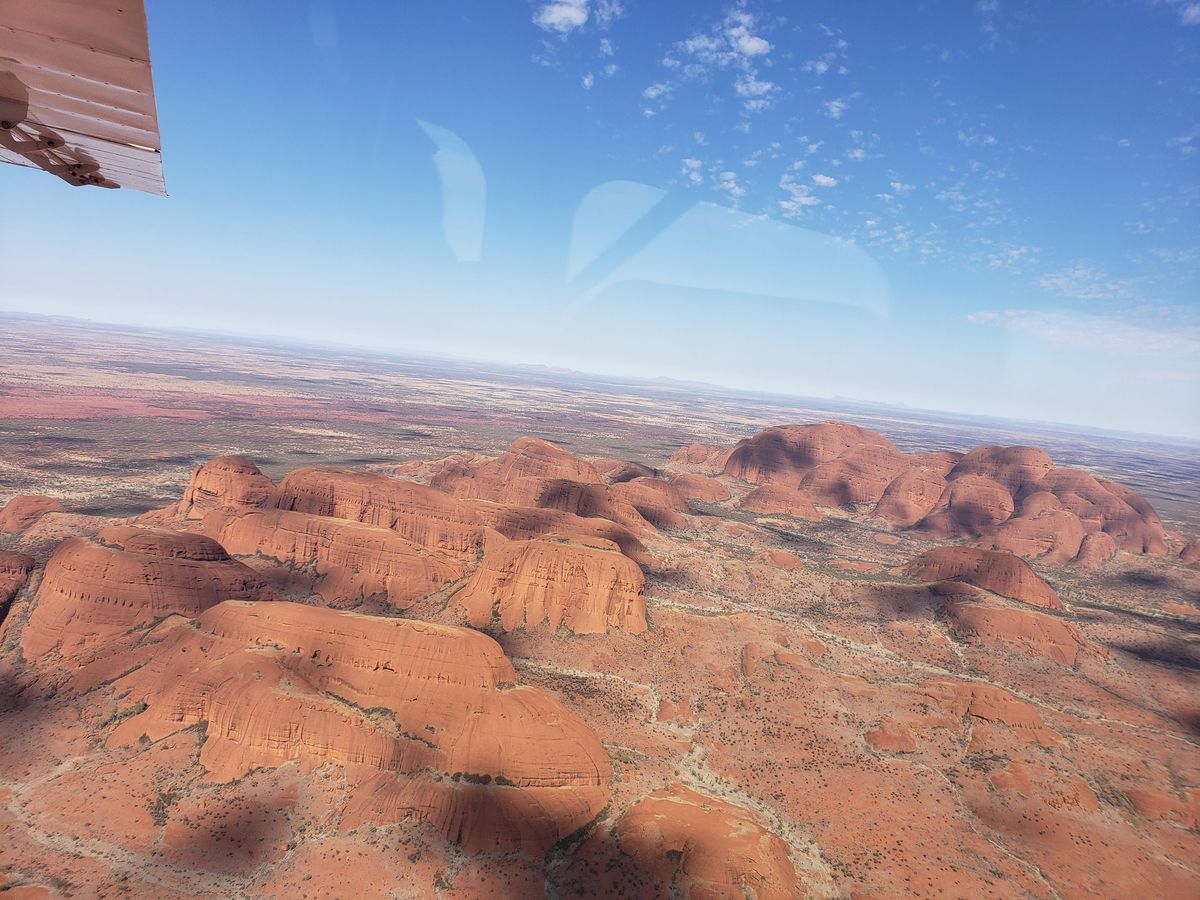 前日にウルル登山でヘトヘトでしたが、登山している時と違って、空の上から見るウルルは全体像が把握できてよかったです。