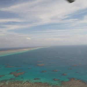 フライト中はパイロットの方が、見えるサンゴ礁の説明を英語でしてくれます。プロペラの音が響いてなかなか聞き取りが難しかったですが、説明なしでも十分にきれいなサンゴ礁です。やっぱり空から見るサンゴ礁の景色は違いますね。個人的にはケアンズに戻った後、着陸直前にキュランダのスカイレールまで見れたことにも感動でした。